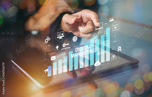 Digital Marketing Concept with Interactive Analytics on Tablet.