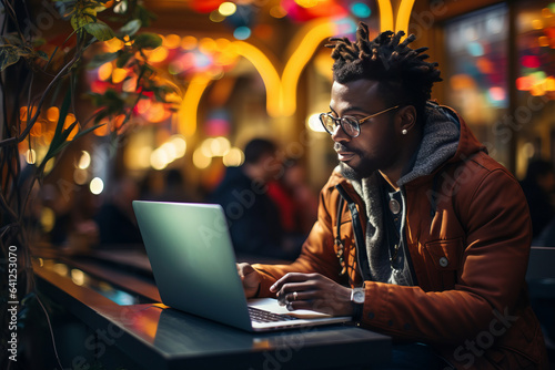 Digital Nomad Sitting In A Vibrant Cafe, Generative AI