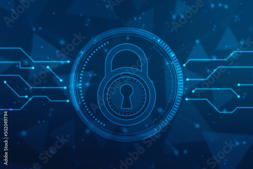 Digital Padlock on abstract technology background, Technology security concept. Modern safety digital background. Protection system, Cyber Security and safety information, personal data concept