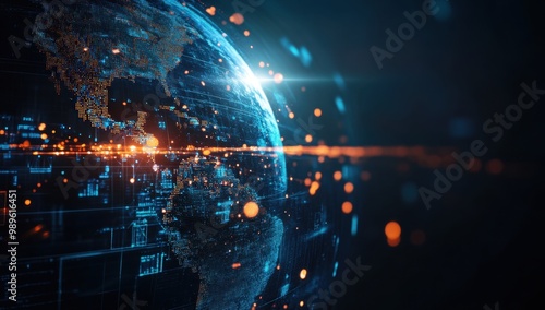 Digital planet Earth with a global network and connectivity concept, digital data transfer earth globe on a dark background Generative AI