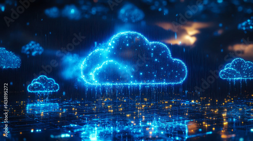 cloud, computing, digital, rain, datum, storage, network, virtual, glowing, blue, concept, tech, information technology, technology, information, futuristic, visualisation, cyber, cyberspace, server, abstract, aglow, innovation, modern, connectivity, computer network, hologram, software, artificial intelligence, system