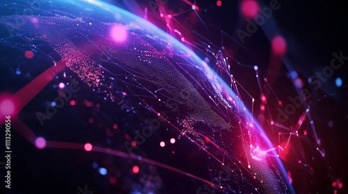 Digital representation of Earth highlighted by vibrant connections and networks in a futuristic atmosphere