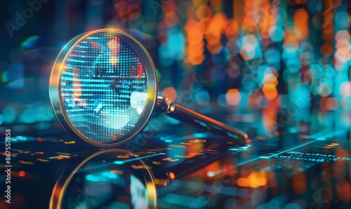 digital, search, glowing, pixelated, magnifying, glasses, blurred, city landscape, background, tech, modern, urban, light, abstract, futuristic, investigation, detection, discovery, analysis, exam, research, science, technology, innovation, concept, idea, creative, imagination, inspiration, vision, future, progress, advance, development, growth, explore, expansion, space, universe