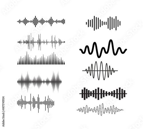 Digital Sound Wave Audio Equalizer Icons Set – Grey & Black Vector Technology Illustrations for Music & Signal Design