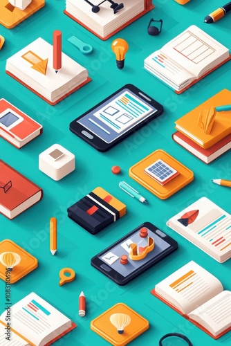 digital, study, icon, bright, educational, content, fun, overhead, creative, learning, environment, background, view, composition, book, technology, design, graphic, tool, cognition, innovation, workspace, modern, imagery, school, idea, inspiration, object, online, research, artistic, layout, teaching, resource, colourful, aesthetic, productivity, contraption, skill, interactive, cheerful, playful, atmosphere, element, phone, pen