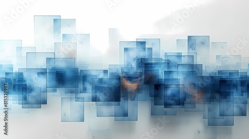 Digital technology blue and white transparent squares and curves poster background