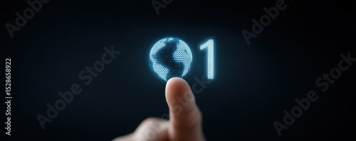 Digital Touch on Earth Globe Representation with Futuristic Number Symbolizing Technology Advancement