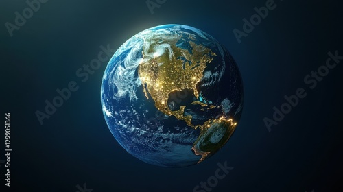 Digital world globe centered on USA, concept of global network and connectivity on Earth, data transfer and cyber technology, information exchange and international telecommunication