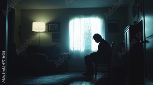 Dimly Lit Room with an Individual in Distress Due to Substance Abuse