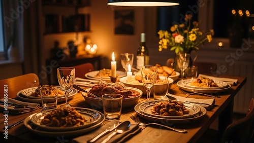 Dinner Party Table Setting with Food.