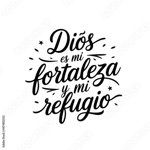 Dios es mi fortaleza y mi refugio. Spanish Bible Verse Vector Design Isolated on White Background