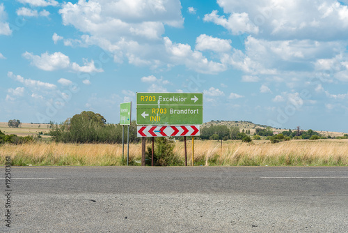 Directional road signs on the R703-road at Verkeerdevlei
