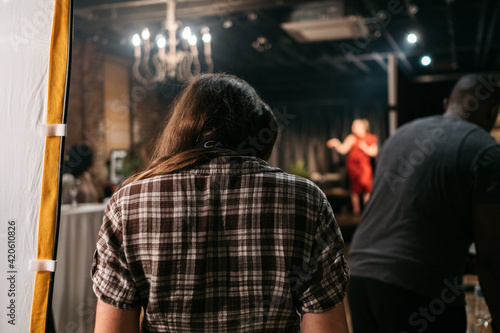 actress, female, filming, filmmaker, indoor, man, motion picture, performing, theatre, woman