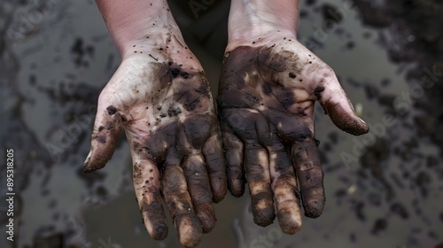 hand, dirty, contaminated, grimy, soiled, unhygienic, hygiene, cleanliness, grime, smudged, messy, filthy, unclean, sanitation, manual labor, work, industry, environment, mud, oil, chemical, hazard, safety, health care