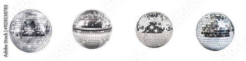 Disco Ball Mirror Reflect Glittering Light Metallic Geometric Shapes Decorative Party Nightclub Event Design Atmosphere Shiny sparkling disco balls with mirror facets creating a mesmerizing