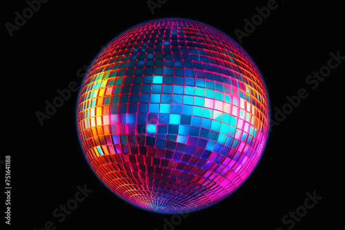 Disco ball with neon effect. Nightclub. Retro disco. Disco party.