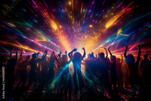 Disco laser - silhouette of people dancing under disco laser beam