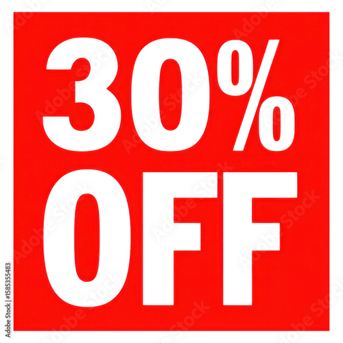 Discount sticker indicating a 30 percent off sale with a bold design on a bright red background