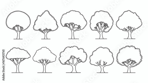 Discover a collection of ten unique, artistic line art trees, perfect for adding natural beauty to your design projects.