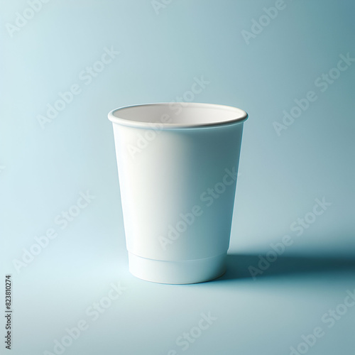 disposable coffee cup in white, on a light blue background, to put your logo, for hospitality businesses