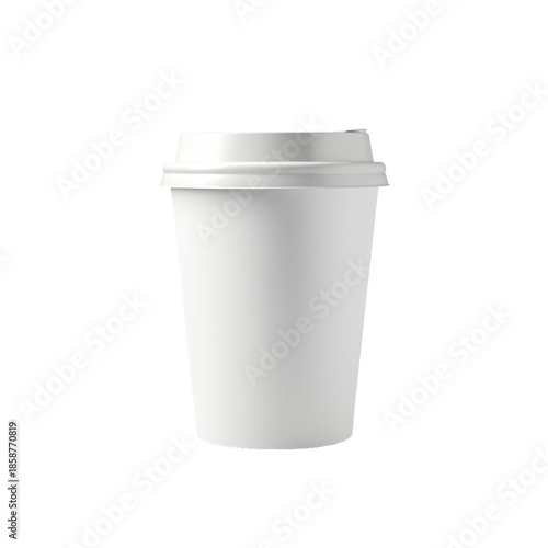 Disposable white paper coffee cup with lid on png transparent background