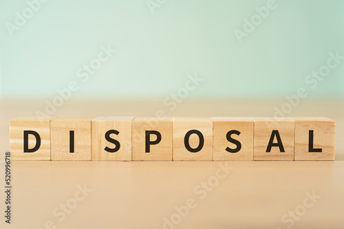 処分・処理のイメージ|「DISPOSAL」と書かれたブロック