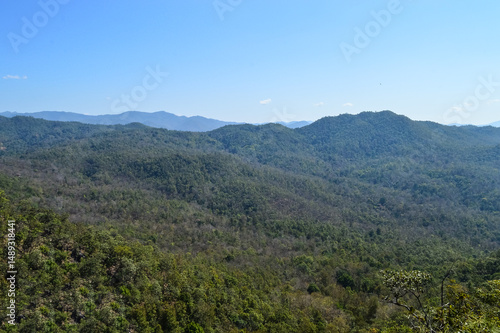 Distant Mountains and Forest with Trees and Sky in Northern Thailand.