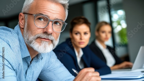 Distinguished man with glasses and a well-groomed beard presenting a confident image in a professional setting