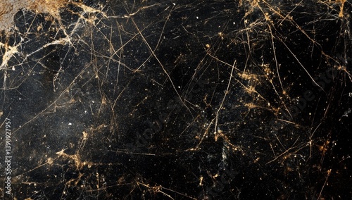 texture, distressed, fractured, grunge, dark, black, gold, surface, debris, spider's web, aged, vintage, background, pattern, marbled, stained, damaged, dirty, abstract, design, overlay, effect, wallpaper, photo, art, graphic, illustration, print, material, industrial, metal, stone, concrete, wood, paper, fabric, photo, image, scan, poster, banner, crackle, antique, worn, damage, dust, dirt