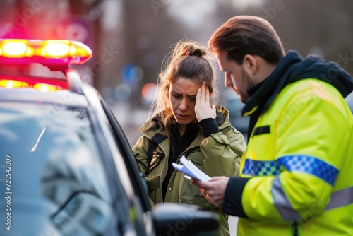 woman, police officer, distress, conversation, car accident, emergency, law enforcement, roadside, assistance, stress, safety, discussion, street, uniform, report, incident, worried, help, legal, authority, trouble, public service, road safety, accident, concern, public safety, researching, protection, vehicle, documentation, law