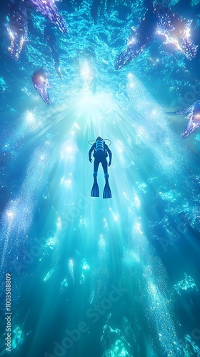 Diver Ascending Through Light