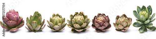 artichoke, succulent, plant, vegetable, edible, decorative, green, pink, purple, floral, natural, garden, home, decor, potted, closeup, isolated, healthy, food, organic, nature, unique, botanical, flora, fresh, variety, design, pretty, colourful, freshness, display, collection, background, white, arrangement, still life, seasonal, growing
