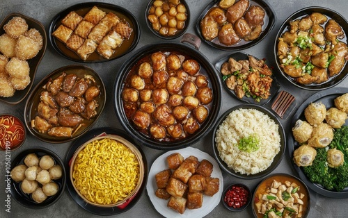 food, dish, table, variety, salad, meat, bread, dessert, cookery, dining, meal, favor, epicure, feast, culinary, widener, ingredient, delicious, savoury, presentation, chinese, new, year, happy, background, lunar, 2025