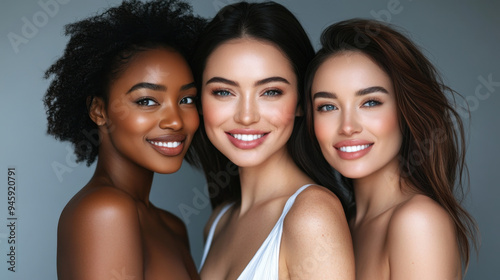 beautiful, beauty, diverse, diversity, woman, female, happy, smile, smiling, portrait, face, skin, skincare, natural beauty, afro, curly hair, blond, brunette, caucasian, african american, model, girl, friends, friendship, together, closeup, studio