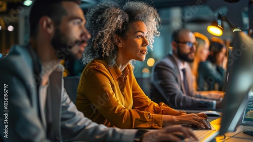 Diverse business professionals connected globally, exchanging data and strategies for customer service and outsourcing. Emphasis on technology and teamwork