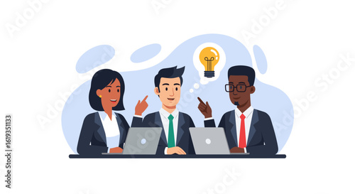 business, teamwork, brainstorming, idea, innovation, collaboration, diversity, inclusion, meeting, laptop, technology, office, corporate, strategy, planning, discussion, solution, creative, success, growth, professional, team, people, colleague, co-worker, concept, illustration, vector, graphic, design