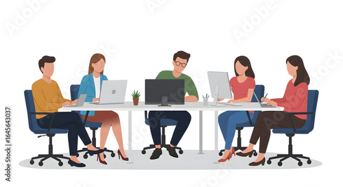 business, team, collaboration, working, office, meeting, people, workplace, computer, laptop, desktop, professional, employee, staff, colleague, teamwork, productivity, discussion, corporate, modern, diverse, man, woman, table, desk, isolated, white background, vector, illustration, graphic, cyberspace, technology, communication, strategy, planning, brainstorming, project, startup, datum, analysis, report, online, corporate culture, success, finance, management, human resources