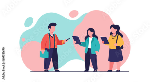 business, teamwork, collaboration, meeting, team, colleague, co-worker, office, professional, presentation, discussion, communication, cooperation, partnership, diversity, inclusion, people, woman, man, modern, illustration, graphic, vector, design, concept, technology, tablet, smartphone, work, project, success