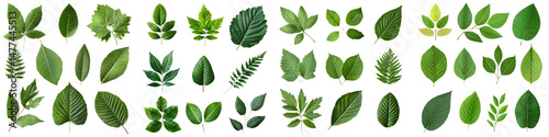 Diverse collection of lush green leaves in various shapes and sizes, showcasing the beauty of nature with vibrant colors, perfect for botanical illustrations and design projects.