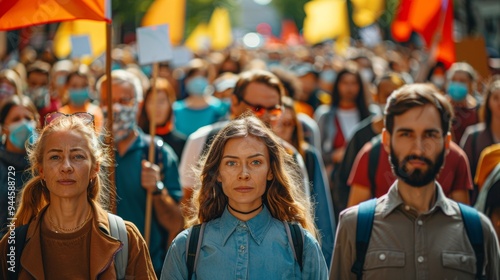 protest, crowd, diversity, oneness, march, banner, flag, urban, people, movement, demonstration, activism, social, street, community, solidarity, together, equal rights, expression, gathering, peaceful, support, change, revolution, collective, public, freedom, determination, defiance, voice, rally, democracy, group, citizen, multicultural, power, engagement