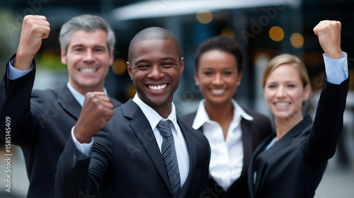 customer service, diversity, success, group picture, collaboration, teamwork, multicultural, celebration, arms raised, achievement, motivation