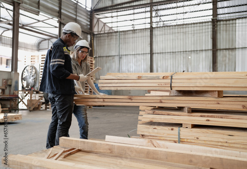 factory, warehouse, examining, diverse, inspecting, men at work, ethnic, hardwood, standing, material, team, production, furniture, timbering, check, engineer, wood, diversity, safety, manufacturing, stock, working, woodwork, young adult, pallet, people, female, plank, workshop, male, hard hat, job, industrial, store, supervisor, caucasian, teamwork, black man, professional, woman, employee, wooden, person, indoor, mixed race, occupation, technician, man, merchandise