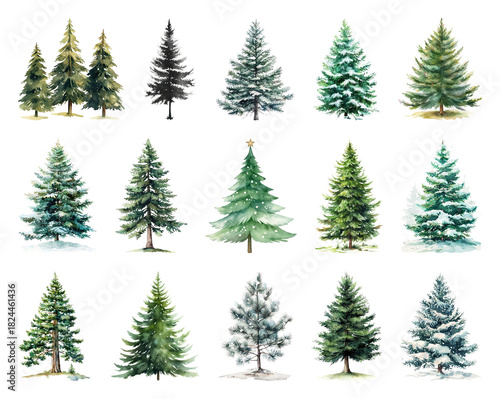 christmas season, christmas spirit, evergreen tree, christmas tree, winter scenery, hand-painted, illustration, celebration, decoration, transparent, collection, watercolor, evergreen, artistic, colourful, isolated, painting, diverse, element, festive, holiday, scenery, design, forest, nature, winter, green, mixed, party, tree, pine, snow, art, set