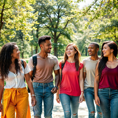Diverse Friends, Park Walk, Sunny Day, Lifestyle Photography