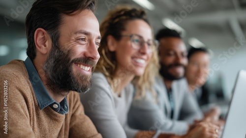 professional, collaboration, meeting, office, workspace, teamwork, business, casual attire, discussion, modern, adult, diverse, engagement, creativity, technology, communication, smile, idea, organisation, participant, interaction, colleague, laptop, attire, smiling, brainstorming, workplace, productivity, innovation, diversity, friendly, conversation, workday, interior, lifestyle, team, sharpened, camaraderie, motivation, success, career, strategy, connection, networking, cooperation, planning, goal, achievement, support