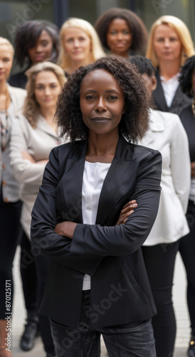 diverse group of corporate women with a black african woman leader at the front full body standing determined leader and ambitious