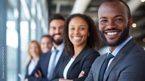 Diverse Group of Happy Business Professionals Smiling Confidently in Office Environment : Generative AI