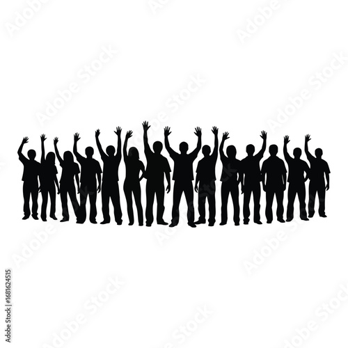 people, group, crowd, silhouette, celebration, raised, arm, oneness, success, achievement, joy, happiness, victory, teamwork, together, community, event, party, festival, concert, cheering, up, human, figure, standing, celebrate, of, symbol, team, spirit, festive, happy
