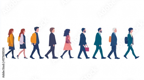 Diverse group of people walking in the city. Modern urban lifestyle, daily commute, and business attire.