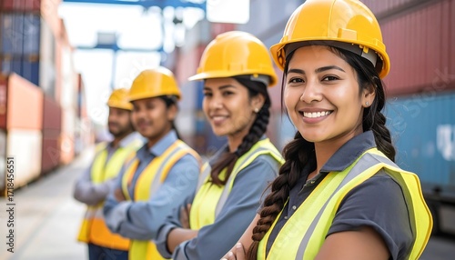 men at work, diverse, safety, gear, construction, industrial, warehouse, teamwork, smiling, confident, positive, focused, collaboration, commitment, support, pride, professional, port, cargo, container, shipping, logistic, industry, employee, happy, oneness, modern, bright